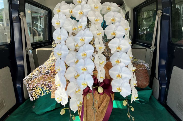 2023/08/3030日午前中お届け分の胡蝶蘭になります。 御注文いただきまして誠にありがとうございます。 三本立ちロングの胡蝶蘭はラッピングで更に豪華に 仕上がりました。 -